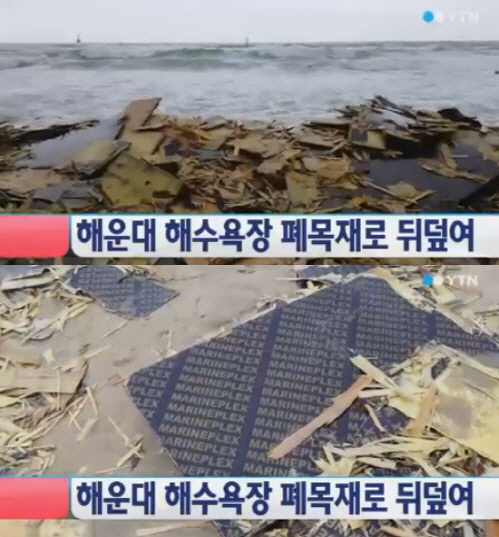 태풍 '나크리' 영향으로 많은 비와 파도가 높았던 해운대해수욕장에는 지난주 말 내내 입욕이 통제된 데 이어 폐목재가 백사장을 뒤덮자 본격적인 휴가철을 맞은 피서객들과 휴가 특수를 기대했던 상인 모두 울상을 짓고 있다.