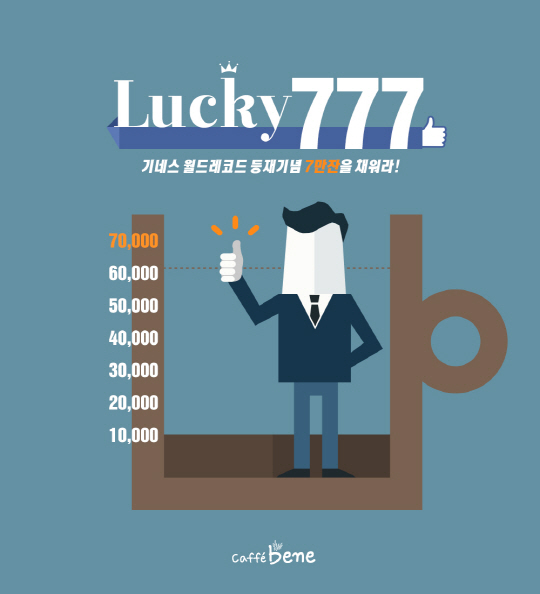 이번 이벤트는 카페베네 공식 페이스북(facebook.com/caffebene)에 접속해 총 7만 잔의 커피가 들어가는 '세상에서 가장 큰 커피 머그컵' 관련 게시물에 '좋아요'를 클릭하고, 경품을 받을 연락처를 등록하면 참여가 완료된다. 매주 '좋아요'를 누른 숫자만큼 머그컵에 커피가 채워지며, '좋아요'가 총 7만 개를 돌파하면 추첨을 통해 총 777명의 고객에게 10만원 상당의 럭키백을 증정한다.