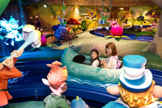 또 아이들의 눈높이에 맞춘 놀이시설이 한 데 모여 있는 어드벤처 1층 '키디존'도 추천한다. 트랙 없이 360도 움직이는 4인승 차량에 탑승해 성 안에 침입한 장난꾸러기 용들을 물리치는 슈팅 어트랙션 '드래곤 와일드 슈팅'을 비롯해 화면 속 흰 고래와 자유롭게 대화를 나눌 수 있는 국내 최초 캐릭터 토크쇼 '벨루가 토크쇼', 바닷속 친구들의 즐거운 레이스 '점핑 피시' 등 아기자기한 놀이시설들이 자리 잡고 있다. 맨발로 뛰어 노는 동화 속 세상 '로티의 키즈토리아'는 가장 인기 있는 체험시설로, '이상한 나라의 앨리스', '곰 세 마리' 등의 동화를 재현한 플레이 공간에서 아이들이 안전하게 뛰어 놀 수 있다. 이밖에도 어드벤처 1층에 자리한 국내 최대 실내 자연학습체험관 '환상의 숲'은 에듀테인먼트 공간의 전형이다. 200여 종 4만여 곤충과 동식물을 직접 볼 수 있고, '나비 날리기', '물고기 먹이주기', '토끼 안고 사진 찍기' 등 직접 체험해 볼 수 있는 프로그램도 마련되어 있다.