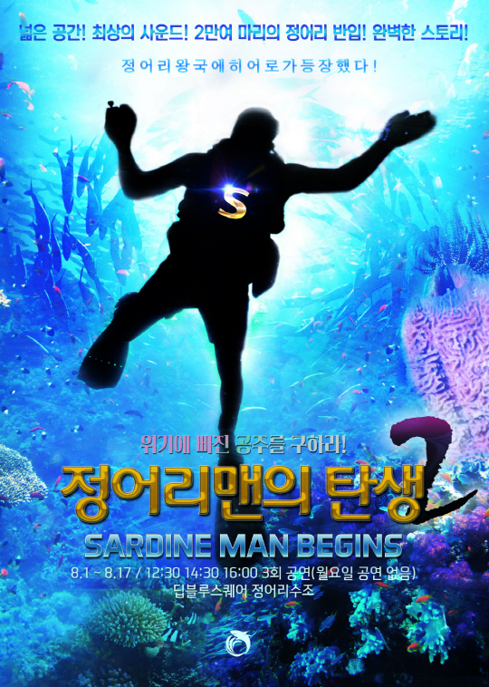 코엑스아쿠아리움에서는 오는 17일까지 무더위를 씻어줄 정어리 수중공연 '2014 정어리맨의 탄생 시즌 2'를 선보인다. 지난 달 진행했던 '정어리맨의 탄생 시즌 1'의 업그레이드 버전이다. 특히 한 번에 300여 명이 관람할 수 있는 공간확보와 최상의 사운드 스피커 확충으로 관람의 편의성을 높였다. 또 최근에 2만 여 마리의 정어리 반입으로 매머드급 정어리 군무를 감상할 수 있게 됐다. 오후 12시 30분, 2시 30분, 4시(하루 3회, 월요일 제외) 공연.