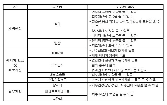 이에 한국건강기능식품협회가 무더운 여름철 건강관리에 도움을 줄 수 있는 건강기능식품을 소개했다. 이들 품목은 식약처에서 인정한 것으로 시중에서 해당 성분이 함유된 제품을 선택하면 된다.