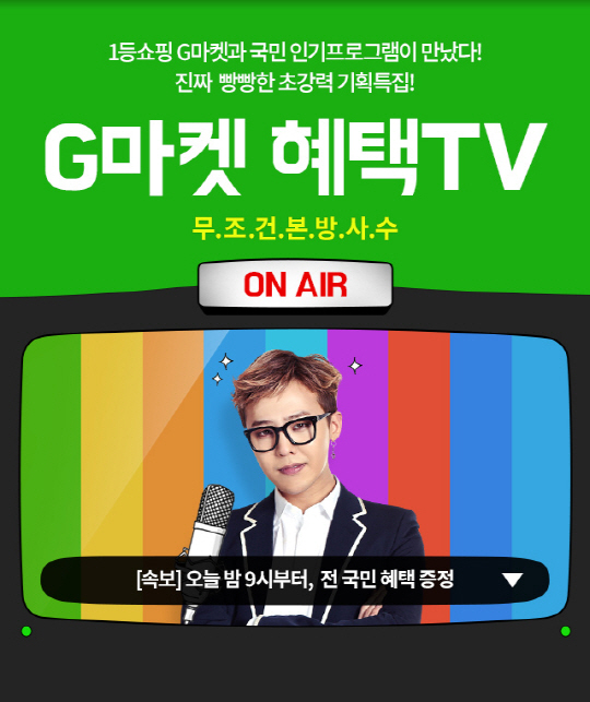 국내 최대 온라인쇼핑사이트 G마켓(www.gmarket.co.kr)이 인기 TV 프로그램 속 상품들을 판매하고 모바일 전용 쿠폰 등을 제공하는 '혜택TV' 프로모션을 진행한다.