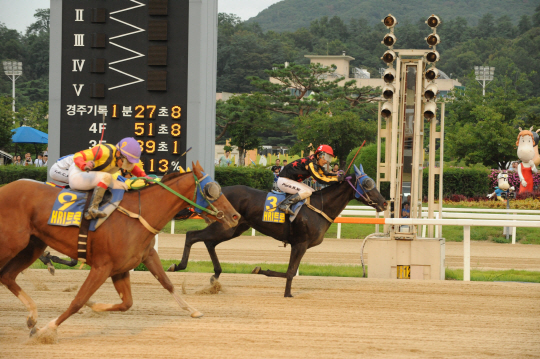 박현우 기수와 호흡을 맞춘 '피노누아(암, 4세)'가 9일 렛츠런파크 서울 제12경주(국2, 1400M, 4세↑, 암, 핸디캡)로 열린 총상금 1.5억원의 제8회 HRI(아일랜드)트로피 경주에서 가 우승을 차지했다. 경주기록은 1분 28초 0.