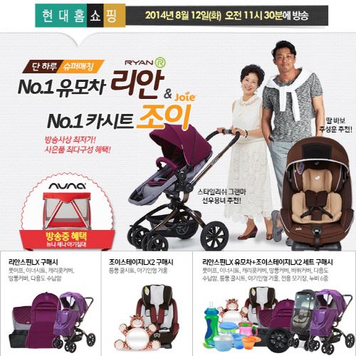 리안유모차 관계자는 "여름휴가철이 한창인데다 추석이 다가오면서 현대홈쇼핑 방송 일정에 대한 소비자들의 문의가 이어지고 있다"며 "상품 구성 및 사은품 혜택 등 구체적인 사항에 대한 문의가 계속돼 소비자들이 좀 더 편안한 여행과 귀성길을 즐길 수 있도록 현대홈쇼핑 방송을 결정하게 됐다"고 전했다.