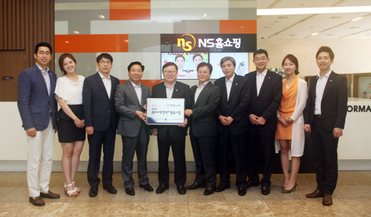 NS홈쇼핑이 지난 8일 산업통상자원부와 경기도 주관의 '2014 경기도 일하기 좋은 기업' 현판식을 판교 본사에서 가졌다.