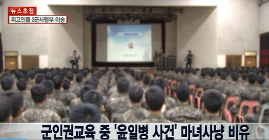 한편, 윤 일병 사건 마녀사냥 발언에 누리꾼들은 "윤 일병 사건 마녀사냥 발언, 정말 어이없다", "윤 일병 사건 마녀사냥 발언, 군 교육 시간에 저런 발언을 하다니", "윤 일병 사건 마녀사냥 발언 창피해", "윤 일병 사건 마녀사냥 발언, 화가 치밀어" 등의 반응을 보이고 있다. <스포츠조선닷컴>
