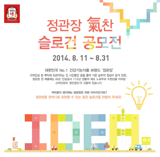 KGC인삼공사가 오는 31일까지 '정관장 기(氣)찬 슬로건 공모전'을 개최한다.