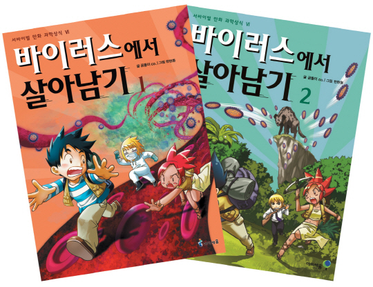 '바이러스 살아남기'는 주인공들이 밀림을 탐험하며 정체불명의 바이러스로부터 살아남기 위해 바이러스의 종류, 발생 역사, 예방법과 대처법 등을 배우는 과정을 친근하고 역동적인 그림체로 풀이했다.