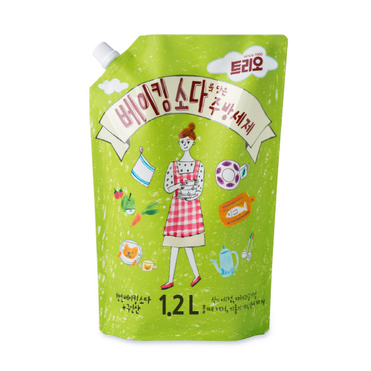 트리오 베이킹소다를 담은 주방세제는 식기류 뿐만 아니라 주방용품 위생관리에도 효과적이다. 주전자나 컵에 생기는 물 때는 물론 후드의 묵은 때, 행주나 도마에 밴 냄새제거 등에도 폭넓게 사용할 수 있다. 또한 트리오 베이킹소다를 담은 주방세제는 야채와 과일에도 안심하고 사용할 수 있는 보건복지부 고시 1종 주방세제이며 천연원료를 사용했기 때문에 우유병 등 유아식기 세정에도 적합하다.