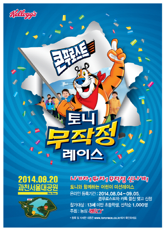 켈로그가 오는 9월 20일 과천서울대공원 분수광장에서 '콘푸로스트와 함께하는 토니 무작정 레이스'를 개최한다.