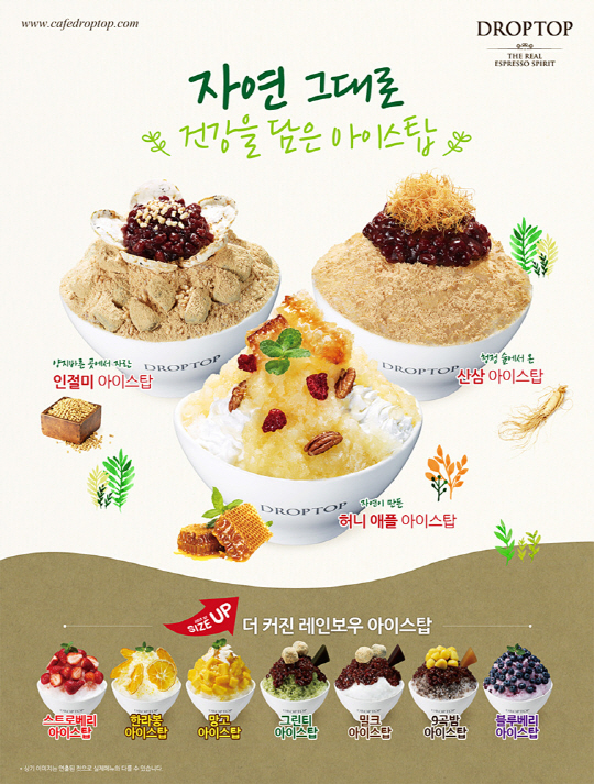 프랜차이즈 커피전문점 드롭탑이 사계절 내내 즐길 수 있는 눈꽃빙수 '프리미엄 아이스탑' 3종을 출시했다.