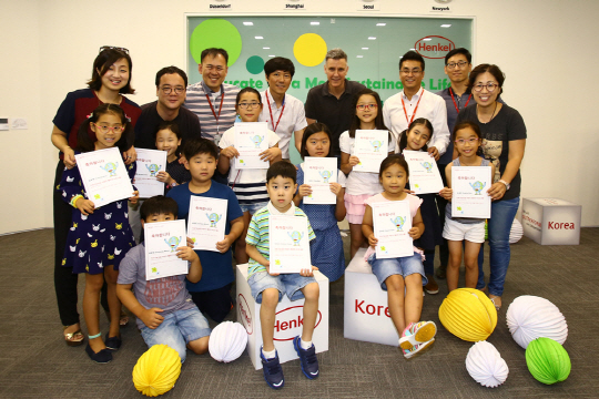 글로벌 생활·산업용품기업 헨켈코리아가 서울 마포구의 헨켈코리아 본사에서 임직원 자녀들을 초청해 에너지 자원 절약 및 환경 보호를 교육하는