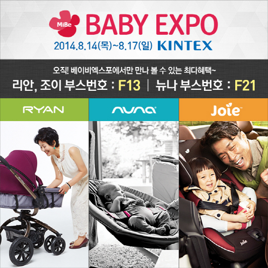 영국 프리미엄 카시트 브랜드 '조이(Joie)'가 14일부터 17일까지 일산 킨텍스에서 진행되는 '2014 베이비엑스포'에 참가한다.