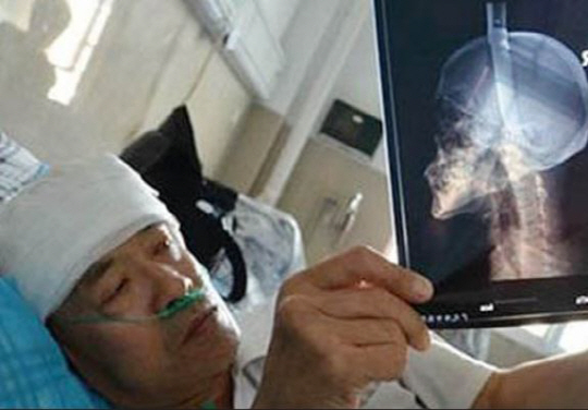 하늘에서 떨어진 칼이 머리에 박힌 남성의 웃지못할 사연이 전해져 화제다.