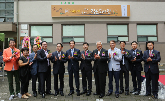 KB국민은행(www.kbstar.com)은 14일 경남 김해시 삼계동에서'삼계 푸르지오 작은도서관'개관식을 가졌다.