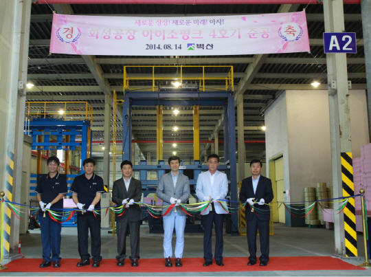 벽산이 14일 경기도 화성시 정남면에 위치한 화성공장에서 벽산의 대표 유기질 단열재 '아이소핑크'의 4호기 생산라인 증설 준공식을 가졌다.