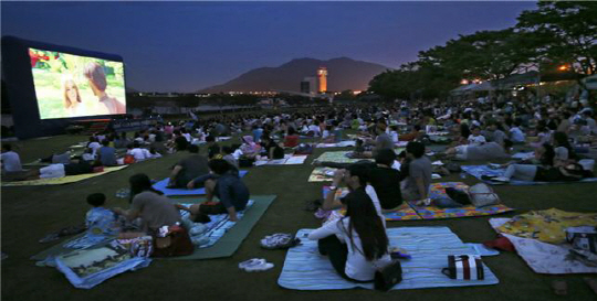 지난 9일 문을 연 미사리 경정장 야외영화관에서 1000여명의 시민들이 애니메이션 '타잔'을 관람하며 더위를 식히고 있다. 올해로 5회째를 맞는 경정과 함께하는 이번 영화 데이트는 매주 토요일 저녁 7시부터 시작되며 오는 30일까지 계속된다. 관람객들에게는 팝콘과 음료수도 제공된다.