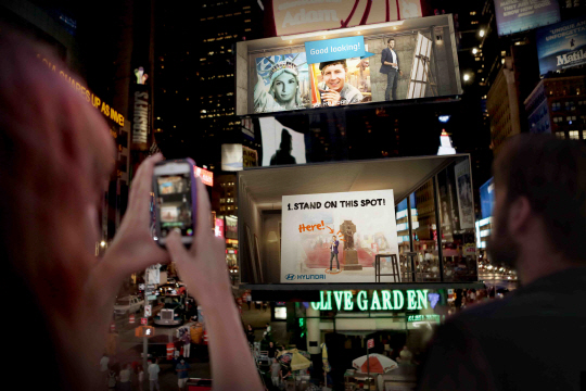 현대자동차는 뉴욕 맨하탄에 위치한 타임스 스퀘어(Times Square) 광장의 현대차 옥외 광고판에 현장 참여자들을 대상으로 쌍방향 소통형 광고인 '현대 브릴리언트 인터렉티브 아트(Hyundai Brilliant Interactive Art)'를 새롭게 선보인다고 밝혔다. 인터렉티브 광고는 일방향으로 소비자에게 메시지를 전달하는 광고와는 다르게 소비자들과 기업간 쌍방향 소통을 통해 만들어 지는 광고다