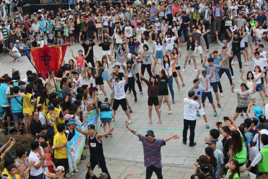 이어 서경대 청년문화콘텐츠기획단이 주축인 100여 명의 출연진이 이해관 음악, 조은학 안무에 의해 열띤 플래시몹을 펼쳤다.