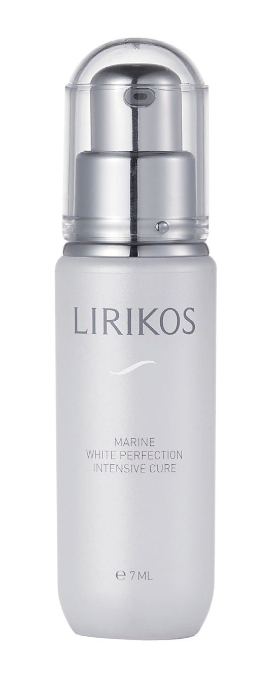 리리코스 마린 화이트 퍼펙션 인텐시브 큐어(7mlX6개/15만원 대)는 미백 기능성 프로그램으로 약산성의 PH로 피부를 관리하고 미네랄 복합체가 피부에너지를 활성화시켜 피부대사를 원활히 하여 피부톤을 환하고 투명하게 가꿔준다. 또한 멜라닌 배출을 가속화하는 것은 물론, 멜라닌 생성과 전이되는 단계를 막아 잡티가 생성되는 것을 방지해준다.