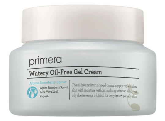 젤 타입의 수분크림인 프리메라 워터리 오일 프리 젤 크림(50ml/3만5천원 대)은 알파인 스트로베리와 알로에 베라 잎, 파파야 열매 추출물이 피부 속 수분감을 채워주고, 오일 성분을 배제한 포뮬라가 산뜻하게 피지를 잡아주어 번들거림 걱정 없는 촉촉한 피부로 만들어준다. 바르는 순간 투명한 젤이 물처럼 터지며 시원하고 빠르게 흡수돼 자외선 노출로 민감해진 피부에 쿨링 효과를 선사한다.