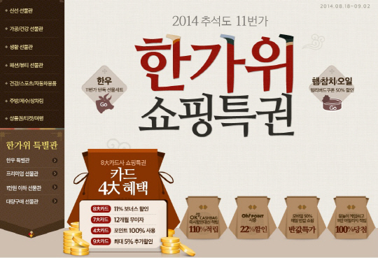 한편, 11번가는 추석을 앞두고 '한가위 쇼핑특권' 기획전을 9월 2일까지 진행한다. 명절 선물로 인기있는 생활용품, 신선·가공·건강식품, 화장품을 최대 60% 할인해 한정 수량으로 판매한다.