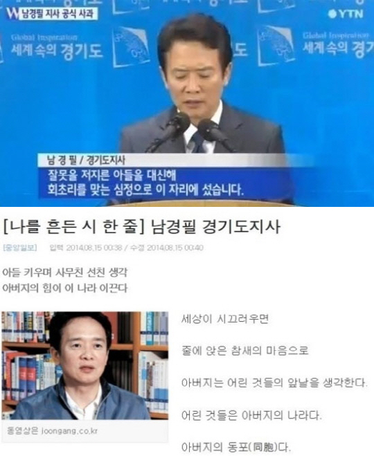 남경필 경기지사의 장남이 강원도 철원군 중부전선의 한 부대에서 발생한 가혹행위 사건의 가해자로 확인되고 있는 가운데, 아들을 언급한 남경필 지사의 기고문의 시기에 대해 논란이 커지고 있다.
