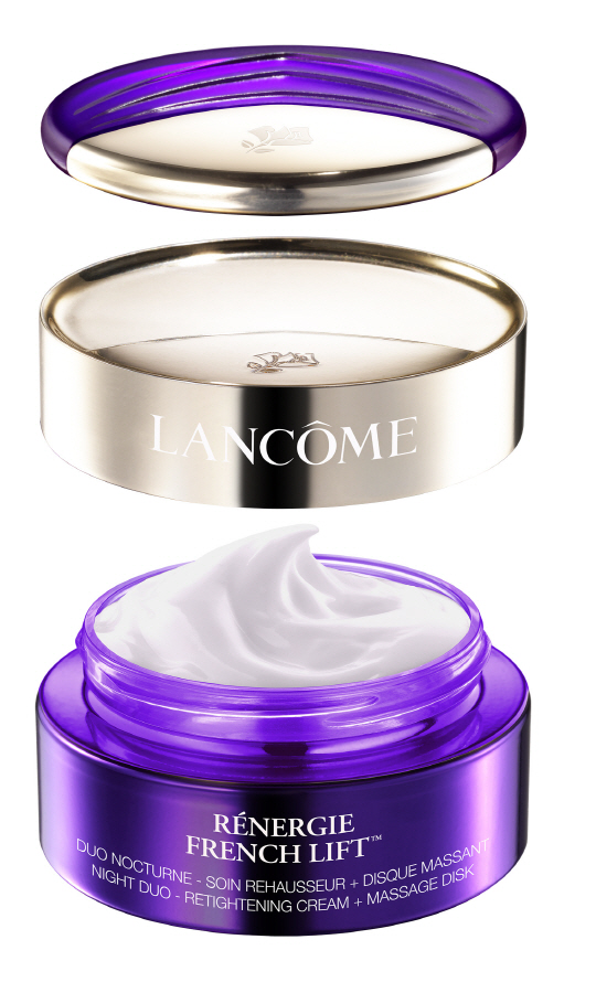 랑콤 레네르지 프렌치 리프트™ 나이트 크림은 주름개선과 리프팅에 효과적인 랑콤 레네르지 라인에서 출시된 신제품으로, 랑콤에서 독자적으로 개발한 마사지 디스크(disc)가 포함되어 있는 것이 특징이다. 마사지 디스크로 얼굴을 순간적으로 자극하여 탄력을 끌어 올린 후 제품을 바르면, 크림에 포함된 특별한 활성 성분이 피부 속 사이사이에 에너지를 전달해 리프팅 효과를 극대화 시켜준다.