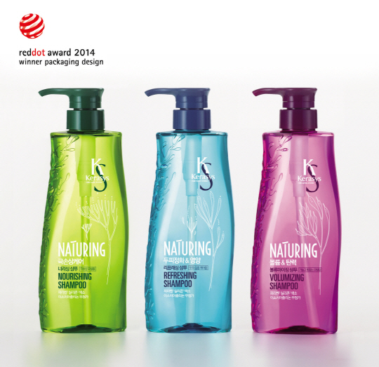 '레드닷 디자인 어워즈 2014' 본상을 수상한 케라시스 네이처링 샴푸는 바다포도 추출물을 주요 성분으로 함유시켜 해양식물의 강한 생명력과 풍부한 에너지를 두피모공과 모근까지 전달하는 두피모공 전문샴푸다. 자연유래 성분으로 두피와 머릿결을 건강하게 가꾸는 네추럴 콘셉트로 물결, 산호초 등을 연상시키는 디자인적 요소를 자연스럽게 녹인 게 높은 평가를 받아, 커뮤니케이션 디자인부문 본상을 수상했다.