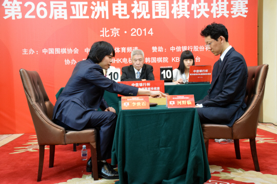 제한시간 없이 매수 30초 초읽기를 하며 도중 1분 고려시간 10회를 사용할 수 있는 초속기전인 TV바둑아시아선수권대회의 우승상금은 250만엔(円), 준우승상금은 50만엔이다. 나성률 기자 nasy@sportschosun.com