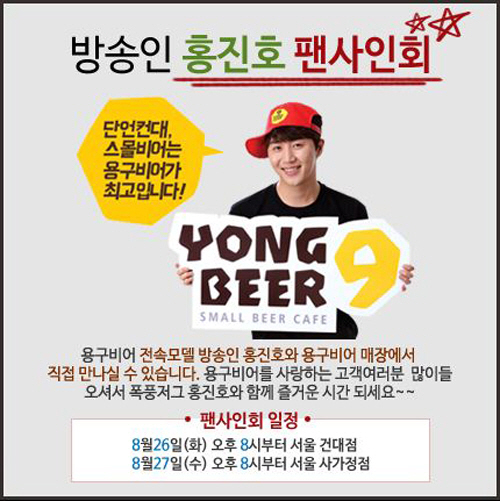 합리적인 가격과 가벼운 음주문화를 만들어 가고 있는 스몰비어카페(small-beer cafe) 용구비어가 방송인 전속모델 홍진호 팬 사인회를 개최한다.