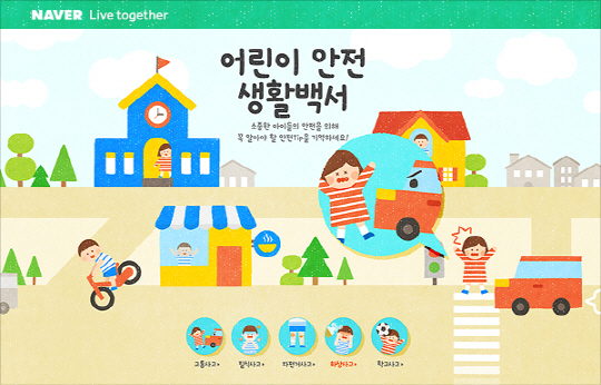 네이버㈜(대표이사 사장 김상헌)가 21일부터 안전행정부(장관 정종섭) 및 한국어린이안전재단(대표 고석)과 함께 어린이 안전 사고 예방을 위한 공익 캠페인 '어린이 안전 생활백서'를 3주간 진행한다.