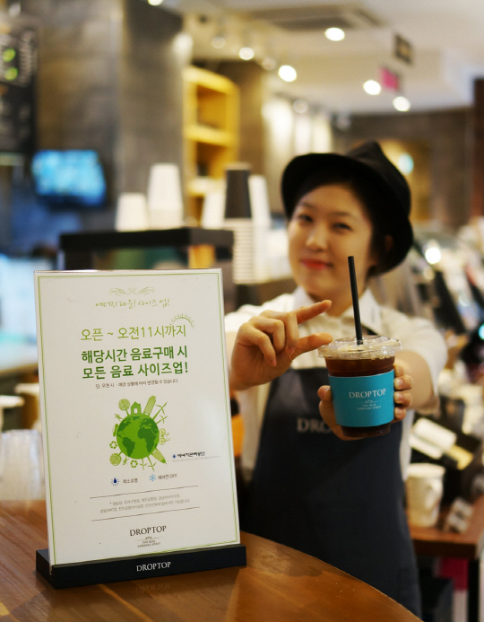 특히 매장 방문 고객들의 편의를 위해 이 시간대에 음료를 구매하는 고객 전원에게는 사이즈 업그레이드 혜택을 무료로 제공하고 있다.