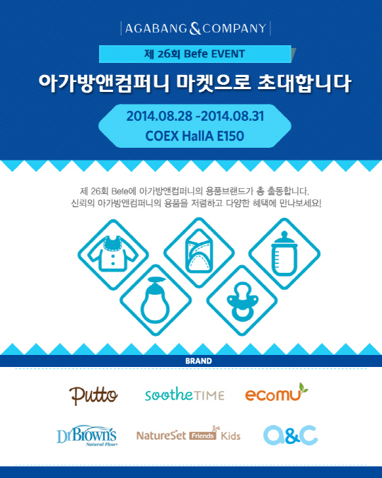 유아동복·용품 전문기업 아가방앤컴퍼니(대표이사 구본철)가 28일부터 31일까지 서울 삼성동 코엑스에서 개최되는 '제26회 베페 베이비페어' 참가해 다양한 이벤트를 실시한다.