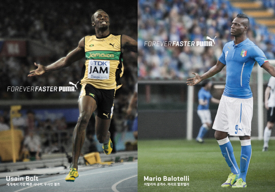 스포츠 브랜드 푸마는 지난 8월 7일부터 전 세계적으로 '포에버 패스터(Forever Faster)'라는 새로운 브랜드 캠페인을 전개해오고 있다. 세계에서 가장 빠른 사나이 우사인 볼트와 축구 스타 마리오 발로텔리, 골프계의 패셔니스타 리키 파울러 등이 출연하는 광고 등을 통해 지속적인 혁신으로 세계에서 가장 빠르고 앞서가는 스포츠 브랜드로 자리매김 하겠다는 메시지를 전하고 있다. 특히, 단순히 '1등', '최고' 만을 지향하는 것이 아니라 자신만의 차별화된 기량과 재능으로 자신감과 즐거움을 추구하는 푸마 선수들의 모습은 푸마 브랜드가 나아가고자 하는 방향과 같다는 점을 마케팅을 통해 강조하고 있다. 푸마는 "'포에버 패스터' 캠페인을 계기로, 보다 혁신적이고 새로운 트렌드의 스포츠 용품을 국내 시장에 선보일 계획"이라며, "연내 전 세계적으로 크고 작은 스포츠 행사가 이어지고 있는 가운데, 스포츠로 소비자에게 감동과 즐거움을 전할 수 있는 마케팅 활동을 지속적으로 펼쳐나가도록 노력하겠다"고 전했다.