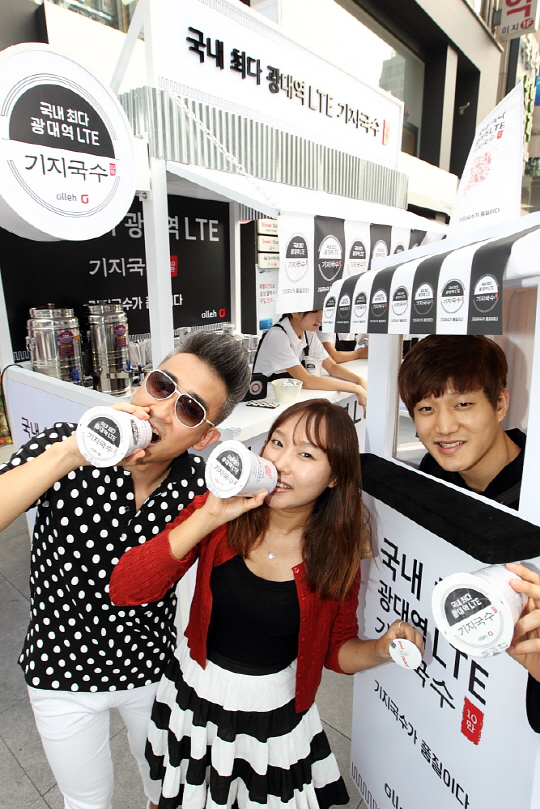 광대역 LTE 기지국수 체험 이벤트는 지난 23일 홍익대 인근에서 시작, 31일까지 신사동, 강남역 등 유동인구가 많은 서울 주요 지역에서 진행될 예정이며 현장에서 이벤트에 참여한 고객에게 '광대역 LTE 기지국수'를 제공한다. .