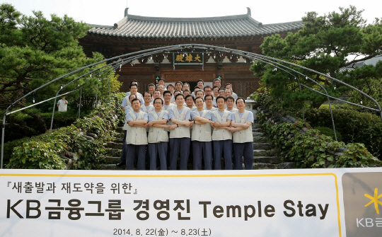 KB금융그룹(www.kbfg.com) 임원들이'Temple stay(템플스테이)'를 통해 반성과 성찰의 시간을 갖고 새로운 KB를 만들기 위한 전환점 모색에 나섰다.