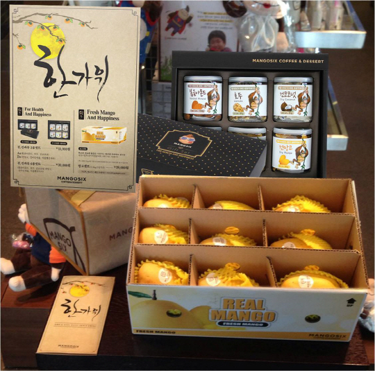 프리미엄 디저트 카페 망고식스가 추석을 맞아 올여름 수입 과일 시장을 강타한 망고와 실속있는 견·건과류 6종 선물세트를 출시했다.