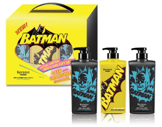애경은 어린이와 키덜트족을 겨냥한 캐릭터 선물세트도 출시했다. 최근 업계를 초월한 캐릭터 열풍에 따라 캐릭터 디자인을 반영한 생활용품 선물세트를 선보인 것. 애경 배트맨 선물세트는 배트맨 카툰을 제품 디자인에 반영했으며 클래식한 이미지의 배트맨을 팝 아트 디자인을 통해 친근하고 감각적으로 표현했다. 애경 관계자는 "생활용품 선물세트는 식상하다는 소비자의 인식을 뒤집기 위해 오드리 햅번, 마릴린 먼로 등 유명 배우를 활용한 디자인은 물론 명화컬렉션, 캐릭터 선물세트 등 혁신적인 디자인의 선물세트를 잇달아 출시했다"며 "선물을 받는 사람을 고려해 제품을 구입하는 소비자가 많아지고 있는 것이 확인된 만큼 생활용품 선물세트 만으로도 품격을 주고 받을 수 있도록 다양한 기획을 해나갈 것"이라고 말했다.