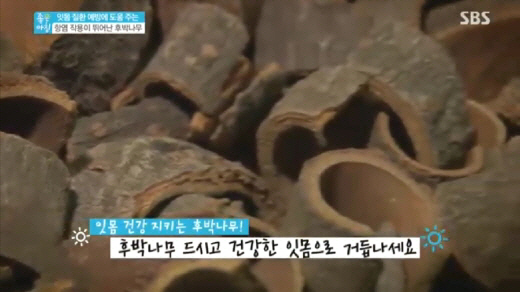 후박나무 껍질은 회자갈색으로 표면에 털이 있으며 중국과 일본에서는 오래 전부터 껍질이 사용돼 왔다. 후박나무 추출물은 장 기능과 소화기능에 도움이 되는 약재일 뿐 아니라 항균작용이 있어 입 냄새를 제거해 주고, 충치를 예방해 주며 치주질환 예방에도 도움이 된다.
