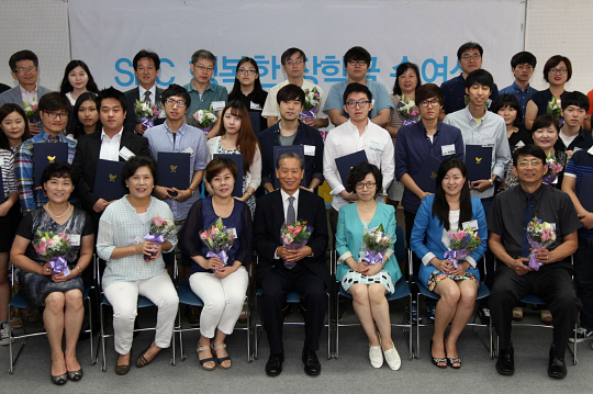 SPC그룹이 26일 서울 양재동 본사에서 '제5회 SPC 가맹점주 자녀 행복한 장학금 전달식'을 가졌다.