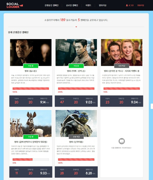 이를 해결하기 위해 토이프로젝트에서는 소셜라우더라는 사이트를 8월 21일 오픈했다. 소셜서비스 안에서 더 크게 퍼지는 효과를 뜻하는 소셜라우더는 영화리뷰전문 체험단 사이트가 그 타이틀이다. 즉, 개봉예정인 영화들의 정보는 물론 예고편도 볼 수 있고, 시사회로 미리 살펴볼 수 있으며 그것을 리뷰로 작성해 공유할 수 있는 공간이다.