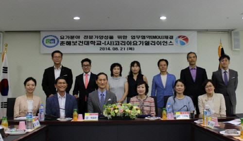 (사)코리아요가얼라이언스(회장 박창은)와 춘해보건대학교(총장 김희진)은 지난 21일 오후 1시 30분 춘해보건대학교 도생관 2층에서 두 기관 간 산학협력 협약식을 가졌다.