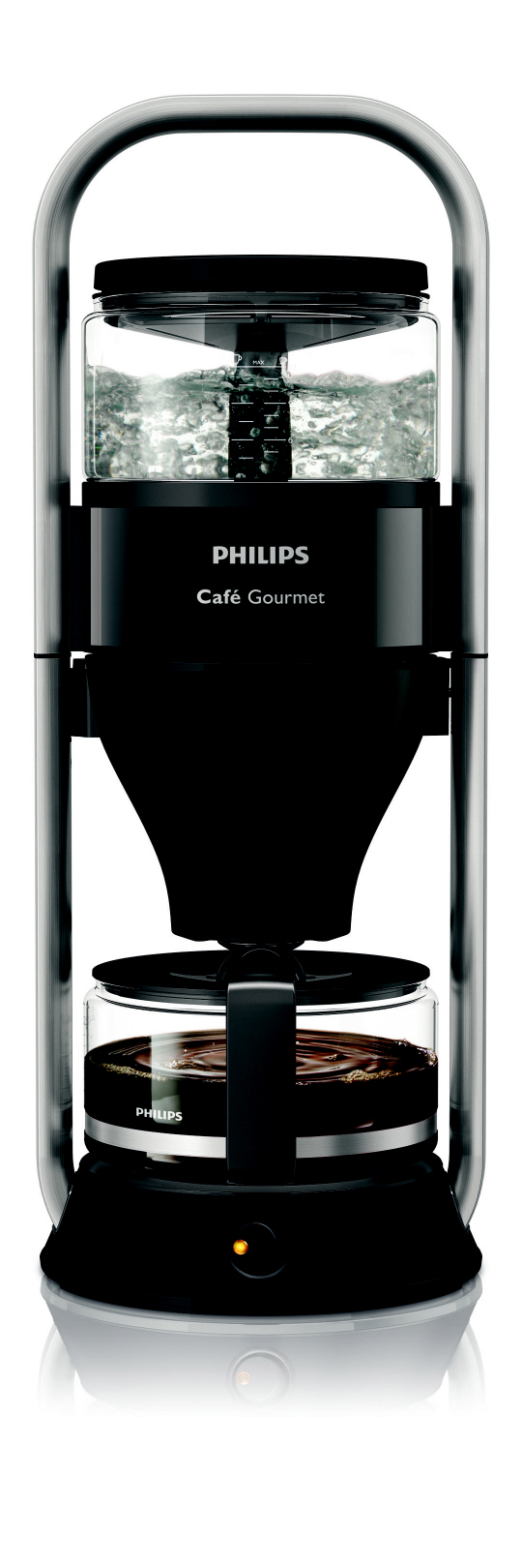 필립스 카페 고메 커피메이커는 1988년에 처음 출시되어 핸드 드립 커피와 같은 '고온 추출 기술'을 적용해 유럽을 중심으로 전세계 커피 애호가들의 사랑을 받고 있는 프리미엄 커피 메이커 시리즈. 필립스만의 고유한 '고온 추출 기술(Boil & Brew system)'은 핸드 드립 커피 추출 원리를 이용, 바리스타가 막 내린 듯한 풍부한 향과 신선한 맛을 자랑한다.