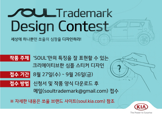 기아자동차(주)는 27일부터 다음 달 26일(금)까지 기아차 디자인의 우수성을 알리며 기아차의 대표 아이콘으로 자리잡은 쏘울의 '트레이드 마크'를 표현한 디자인 공모전 출품작을 접수한다.