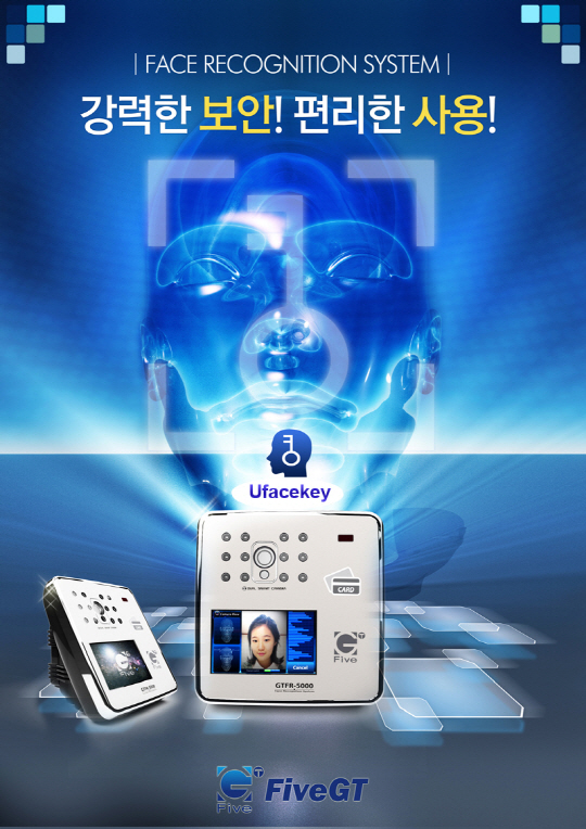 차세대 바이오 인식 보안 솔루션 기업, 파이브지티(www.fivegt.com, 대표이사 정규택)가 얼굴인식 단말기, '유페이스키(Ufacekey)' 보급 확대에 나선다.