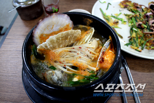 칼국수와 함께 먹으면 별미인 이 집의 웰빙파전은 밀가루에 단호박과 당근, 양파를 갈아 넣어 생물낙지와 함께 부쳐진다. 그래서 색이 노릇노릇하며 기름기가 적고 담백하다. 엄청난 크기를 자랑하는 키조개와 각종 해산물이 들어간 해물된장뚝배기의 경우에는 김 대표의 집에서 직접 담아 3년간 숙성된 된장을 사용해 구수하면서도 얼큰하고 시원한 맛을 자랑한다.