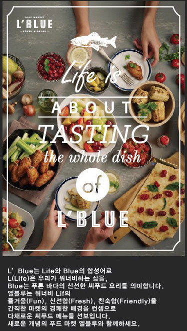 엘블루 시즌2는 워너비 Life의 즐거움(Fun), 신선함(Fresh), 친숙함(Friendly)을 간직한 마켓의 경쾌한 배경을 컨셉으로 다채로운 씨푸드 메뉴를 선보일 예정이다.