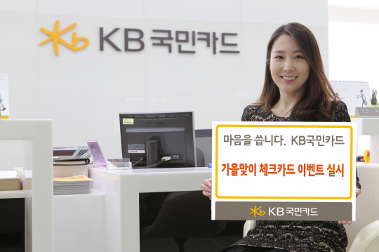 KB국민카드가 체크카드 이용 고객들에게 적립금과 경품을 제공하는 '가을맞이 체크카드 이벤트'를 실시한다.