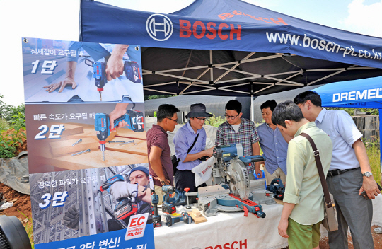 이날 보쉬 전동공구는 '현대 공구의 활용'을 주제로 전통 한옥 건축 시 사용할 수 있는 전동공구의 종류와 활용법에 대한 강의를 진행했다. 건축가들이 목구조를 많이 접해보지 못한 점에 착안, 보쉬 전동공구의 원형샌더(GEX 125-1AE)와 대패(GHO 10-82), 트리머(GMR 1), 만능컷터(GOP 18V-EC) 등 목공용 공구들을 현장에서 시연하고 직접 체험해 볼 수 있는 기회를 제공해 수강생들의 뜨거운 반응을 받았다.